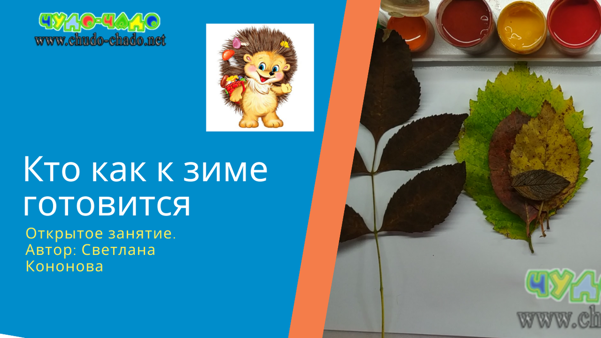 Новое субботнее занятие. Сегодня мы рисуем оттисками осенних листиков и разговариваем о том, как к зиме готовятся ёжик, белка и зайка.