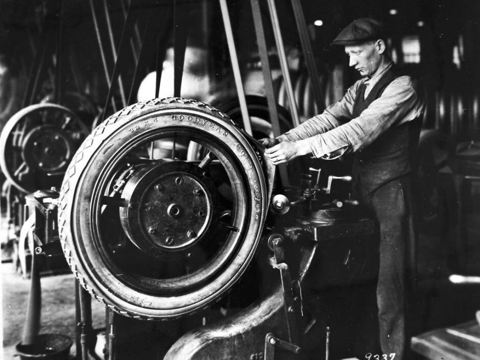 Весной 1898 года житель городка Эйкрон штата Огайо Фрэнк Сейберлинг случайно встретил своего знакомого по бизнесу в холле одной из чикагских гостиниц. Через какое-то время он вышел из здания гостиницы, держа в руках купчую на заброшенный завод по производству соломенного картона, совершенно не представляя, что с ним делать дальше. В августе того же года у него и его брата Чарльза созрело решение заняться производством изделий из резины. Так началась история компании GoodyearTire & Rubber Со, уставный капитал которой составлял к тому моменту 100 000 долларов. 21 ноября 1889 года компания, которой 18 годами позже суждено было превратиться в крупнейшего мирового производителя шин, запустила производство своей первой продукции шин для конных экипажей. На протяжении своей столетней истории компании Goodyear сопутствовал бурный рост и колоссальный успех по мере того, как ее деятельность все сильнее переплеталась с развитием автомобильной и авиастроительной отраслей, а также благодаря той жизненно важной роли, которую она играла в военных кампаниях и исследованиях космоса.
