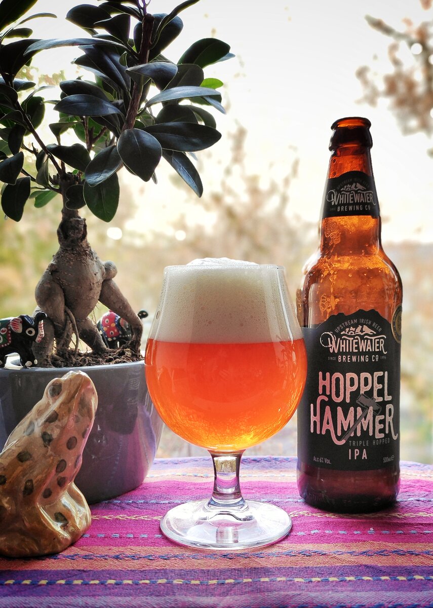 Весьма неплохой индийский пэйл эль: Hoppel Hammer IPA от пивоварни Whitewater из Северной Ирландии. Янтарный «бриллиант» для всех ценителей по-настоящему ярких и горьких стилей.