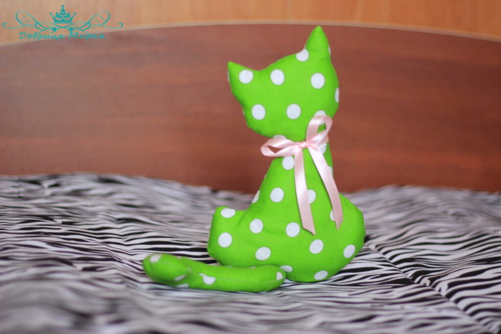 Сшиваются они по отдельности, также оставляются небольшие отверстия для выворачивания и для набивания наполнителем, потом хвост пришивается к основе кошке.