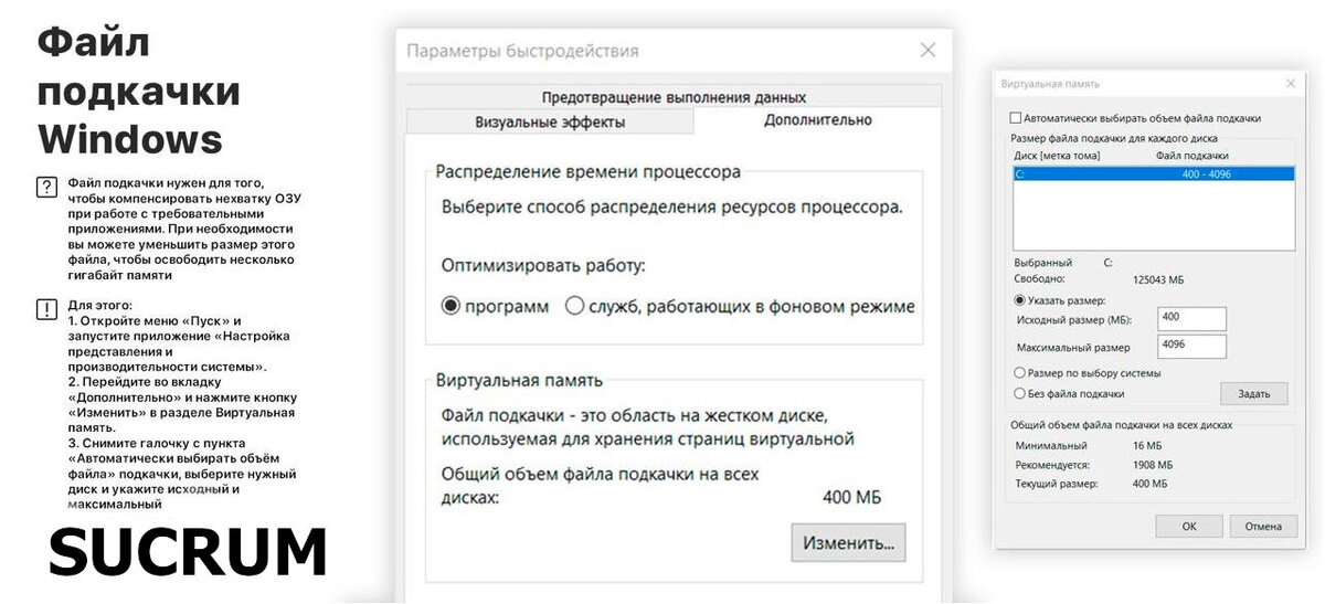 Файл подкачки нужен для того, чтобы компенсировать нехватку ОЗУ при работе с требовательными приложениями. При необходимости вы можете уменьшить размер этого файла, чтобы освободить несколько гигабайт памяти, или наоборот увеличить его, чтобы повысить производительность системы.