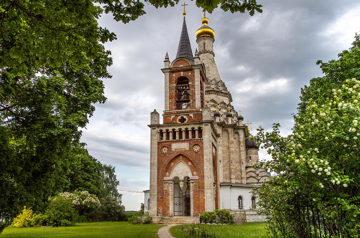 Всего лишь в 14 км от МКАД, стоит на холме необычная церковь времен Ивана Грозного, вокруг все очень ухожено, подстриженные газончики, цветы, 2 часовенки.