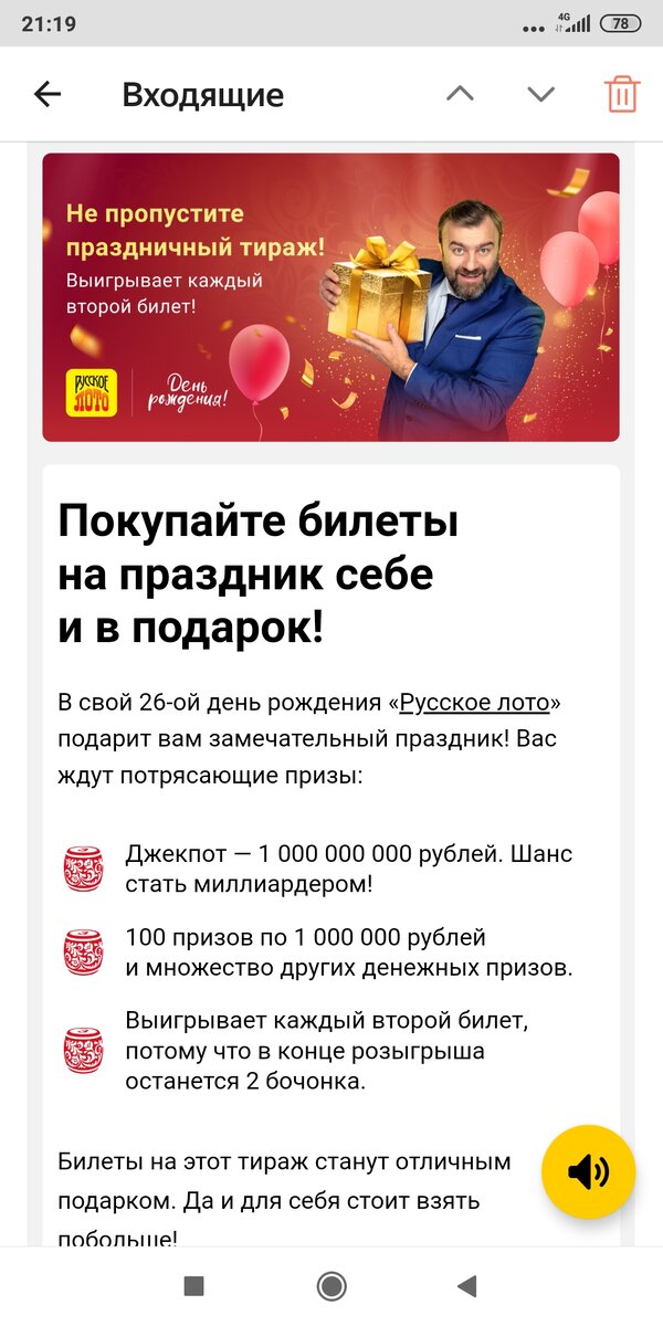 Конечно, выиграть миллиард я не надеялся, как и миллион, но вот утверждение рекламного слогана, что выигрышным будет каждый второй, требовало проверки.