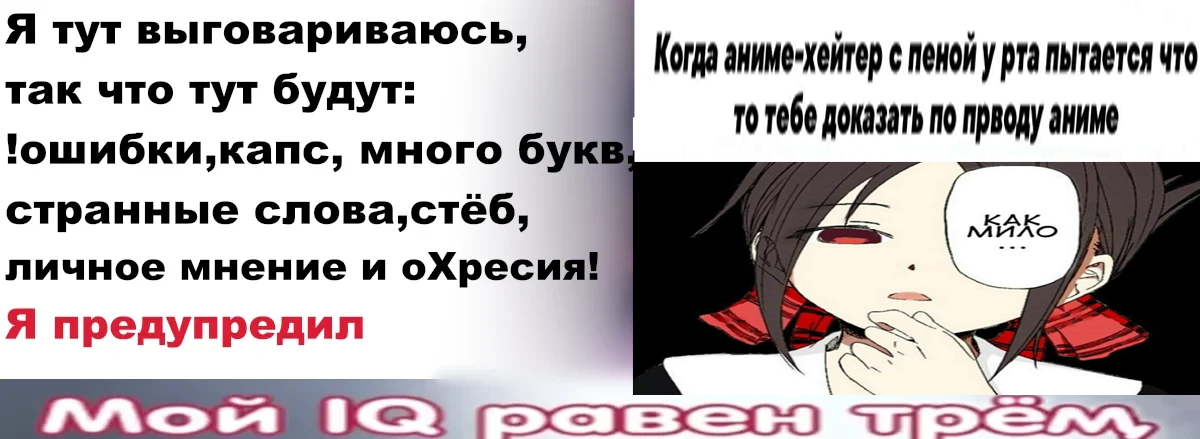 Привет, я сделал статью будучи в опьянениях, где написал всякий бред на тему "Аниме - Г@в@", но тогда я хотел порофлить, что и сделал. Но теперь я хочу серьёзно об этом поговорить. Аниме делают в культ и это как то меня не устраивает, хотя сам смотрю аниме 6 лет уже. И да, аниме сильно отличается от фильмов и сериалов, так что об этом дальше расскажу.