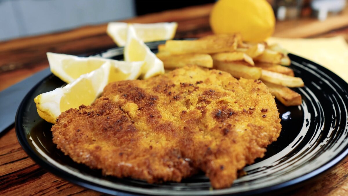 Шницель - очень популярный формат тонко нарезанного, отбитого и обжаренного в сухарях большого куска мяса.