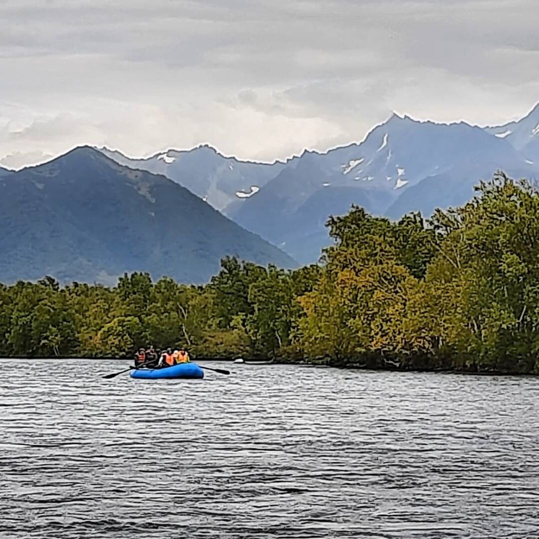 Спустя минут 40 загрузились в рафты и поплыли вдоль русла реки, при этом кто хотел ловили рыбу. Я столько лососёвых не видел никогда. Причём вдоль берега плавала отнерестившаяся дохлятина в просто неограниченных количествах.