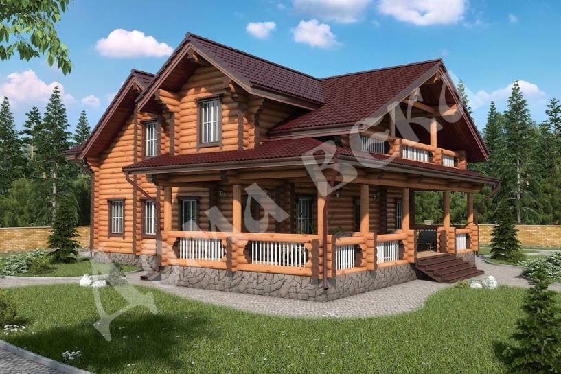 Проект строительства двухэтажного дома из оцилиндрованного бревна 12,3 х 13 м. (300 мм — максимальный диаметр).