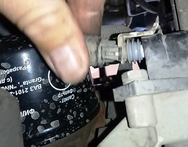 Аккуратно вытащите его и отведите в сторону. Затем можете откручивать фильтрующий элемент. Есть некоторые водители откручивают сверху, не снимая датчик. Так можно сломать его.