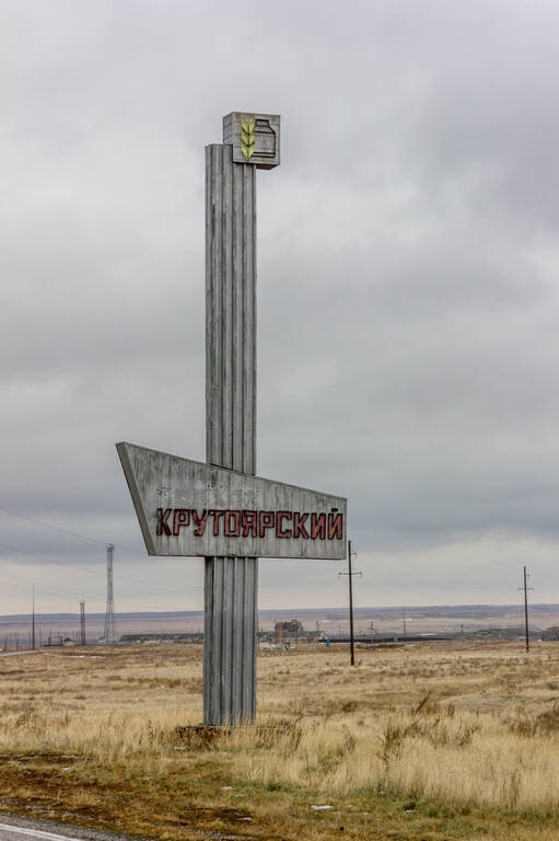 ...да вон те холмы уже он. Въездной знак в посёлок Крутоярский Октябрьского района Челябинской области Изначально-то было написано про совхоз :)