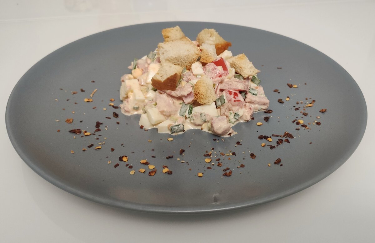 Очень вкусный и быстрый салат с тунцом и чесночным сухариками
