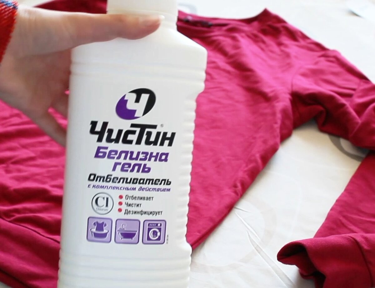 Вещей которые не жалко было испортить, у меня не было, поэтому пришлось сходить в магазин и купить кофту, взяла самую обычную за 2 тысячи. Ещё купила белизну и приступила к работе.