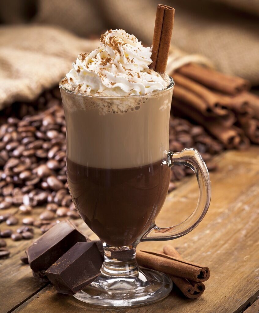 Сваренный кофе охлаждается до 10–15 градусов по Цельсию, выливается в стакан, добавляется мороженое. Сверху можно потереть