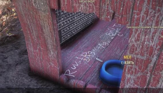 Недалеко от убежища 76 можно встретить не примечательное здание, около которого вы найдете ту самую будку. Здание отмечено на карте как «Уединенная хижина». Приглядевшись в будку собаки, вы увидите формулу и химическую таблицу элементов.