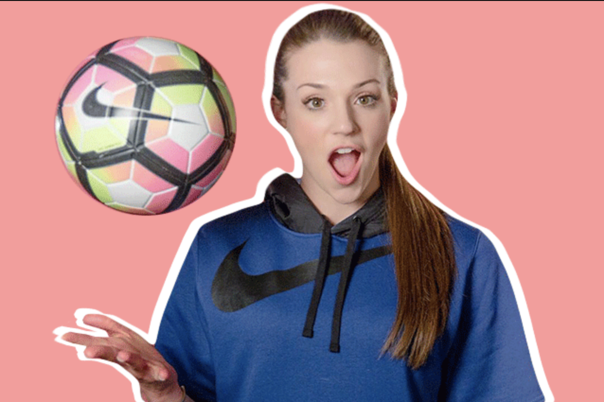 И тут прямо с футбольного прилетает мяч! И падает прямо под ноги девушке. Тут в ней заиграло детство. и она решила его отбить. Но в туфлях это сделать не так-то просто