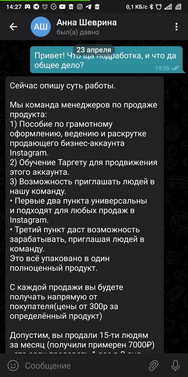 Ну что ж, как следует из названия, я потерял свои кровные сто рублёвских. Но оно того стоило, чтобы создать эту педо-статейку. Дело было в апреле, расцвет короны, желание заработать в интернете било через край. Оно бьёт и сейчас, но есть небольшой, а опыт, как не попадаться в капкан нечистых на руку смердов. Итак, в одном из телеграм-каналов по поиску работы нашел объявление о подработке.