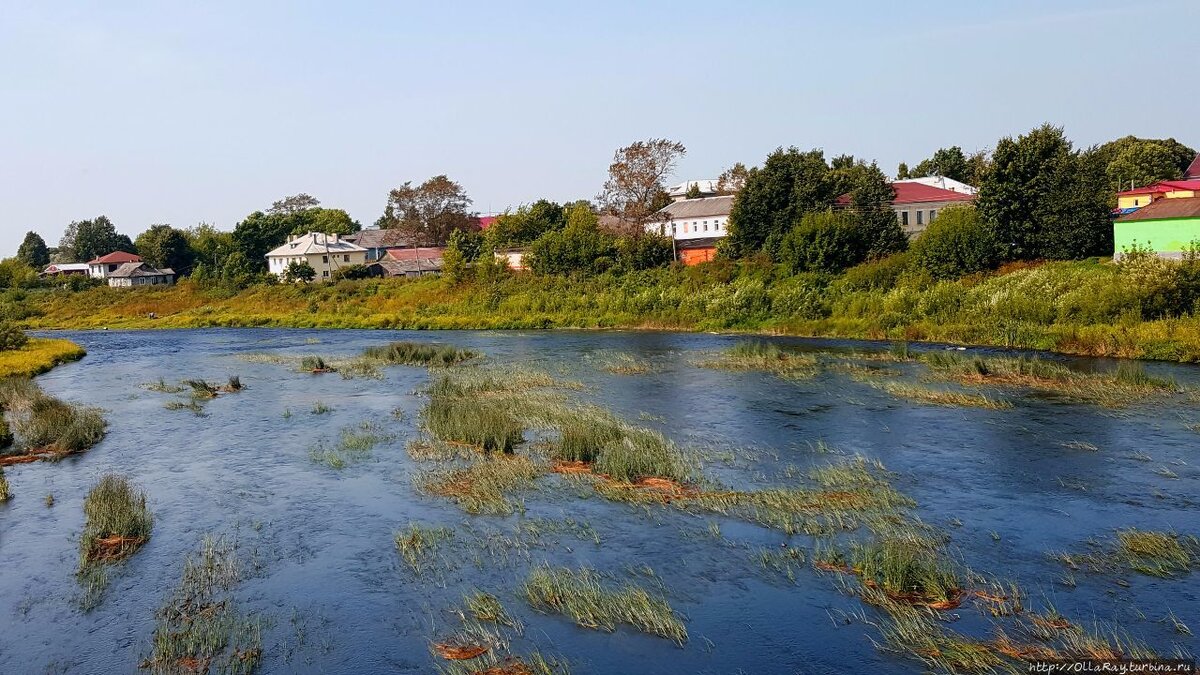 Остров — это город. Хотя, остров — это, конечно, остров. В общем, Остров — это и город и остров. Когда остров стал островом — неведомо, а вот когда остров стал Островом — известно, аж в 1341 году, но и то, говорят, что на самом деле чуть не веком ранее . Да..., дела давно минувших дней... На острове том была крепость, поначалу деревянная, а после, с необходимостью нарастить оборонную мощь, и каменной, пятибашенной. Опять же, говорят, что вид имела величественный и суровый, а противника устрашала как следует. Вот жаль, что ныне только молва и осталась. Ну и остров. Кстати, как и полагается, в периметре крепости имелся храм, освященный в честь Николая Чудотворца. Вот храм в наличии и ныне и даже в очень хорошем состоянии. Есть в городе и ещё кое-что вполне сохранное и к осмотру пригодное — несколько купеческих домов, здания ямской станции, учебных заведений, храмов. Немного совсем, но с тем самым очарованием уездных городов, что я и ищу каждый раз в поездках по просторам нашей родины.Ну, и надо не забыть сказать о флагманской достопримечательности города — подвесных мостах, благодаря которым я и узнала о существовании Острова. Собственно, в кратком путеводителе именно их и указывают в совсем, навскидку, небольшом (почему-то) перечне мест Пскова, обязательно рекомендованных к осмотру. Даже поначалу мне думалось, что мосты эти собственно в Пскове и находятся, ну максимум чуток за пределами. Хотя, по правде говоря, Остров и сейчас — один из самых населённых районных центров Псковской области. А в своё время был он весьма славен военными подвигами, да и торговым делом крепчал — вели тут кожевенное и льняное производство. В советское время город тоже не забывали,а располагалась здесь база торпедных катеров ракетных войск. Кстати, Остров упоминается в Договоре о ликвидации ракет средней и меньшей дальности, потому как уничтоженные Р-12 как раз таки неподалёку и базировались. В общем, как говорится — не хрен с горы, а город с историей! И при более детальном знакомстве с его описанием замечаешь как всё крепче и крепче становится желание здесь задержаться и осмотреться пристальнее. Но летом, ещё за пару часов до посещения Острова, я о нём и знать не знала, да и после думалось мне, что окромя мостов здесь ловить нечего. Как же я была не права! Отсюда и материала — всего ничего. Поэтому, начав было делать заметку об Острове ещё в августе (как промежуточную точку маршрутного каникульного дневничка), оставила затею до октября — планировала посмотреть на здешнюю золотую осень, да погулять от души, но не "срослось". Посему таки вернусь — к идее черкнуть заметку сейчас, а к идее углубленного посещения, надеюсь, в следующем сезоне.В памяти Остров представляется именно таким: заросшая, но быстротечная река Великая; невысокие дома по обоим берегам; пейзажи парков и улиц, будто сошедшие со страниц книг Владислава Крапивина, повествующих о лихих подвигах подмосковных подростков.Первое, что видит случайный путник в Острове — это собор Троицы Живоначальной, потому что навигатор приводит аккурат на площадь перед ним, откуда и до мостов рукой подать, да и, смею предположить, это центр города. А вот утверждать могу, что ранее эта площадь носила название Торговой. Как часто бывает, возвышался здесь некогда храм деревянный. Ну а в своё время заменили его на каменный. Опять же, в си