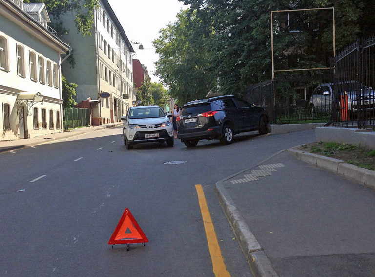 - Если пострадавший чувствует себя нормально и в помощи медиков не нуждается, то после звонка в ГИБДД он должен отключить зажигание и поставить на дороге аварийный знак по всем правилам.