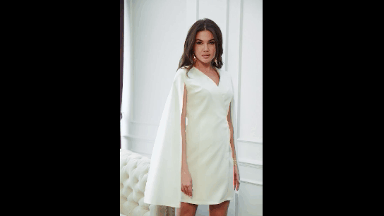 Уникальное платье кейп-силуэта на запа́х с глубоким v-образным вырезом. Идеально подходит для торжества. Размер под себя можно хорошо отрегулировать поясом. Главная изюминка этого платья в необычных, эффектных рукавах, словно крылышки.