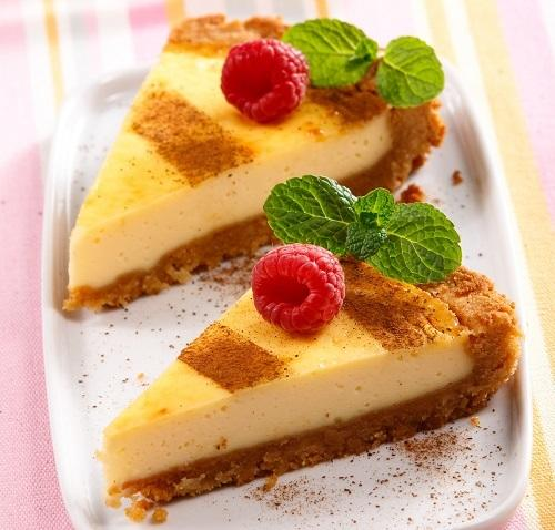 Начинку выложить на корж. Выпекать еще 45 мин. Полного затвердевания верхнего слоя не допускать. Пирог остудить и посыпать сахарной пудрой или тертым шоколадом.