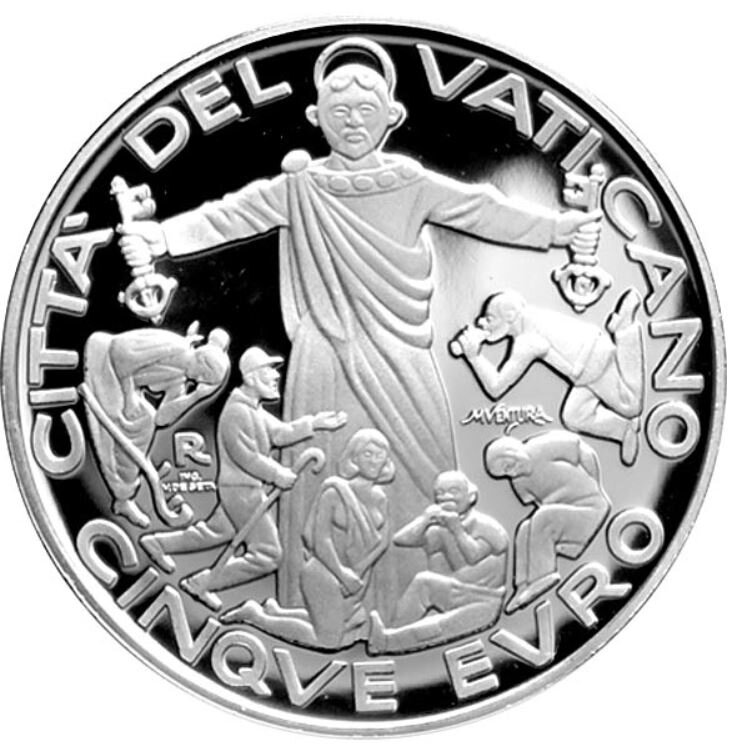 С 14 октября 2020 года Ватикан выпускает 5 euro в серебре, посвященные мигрантам и беженцам.