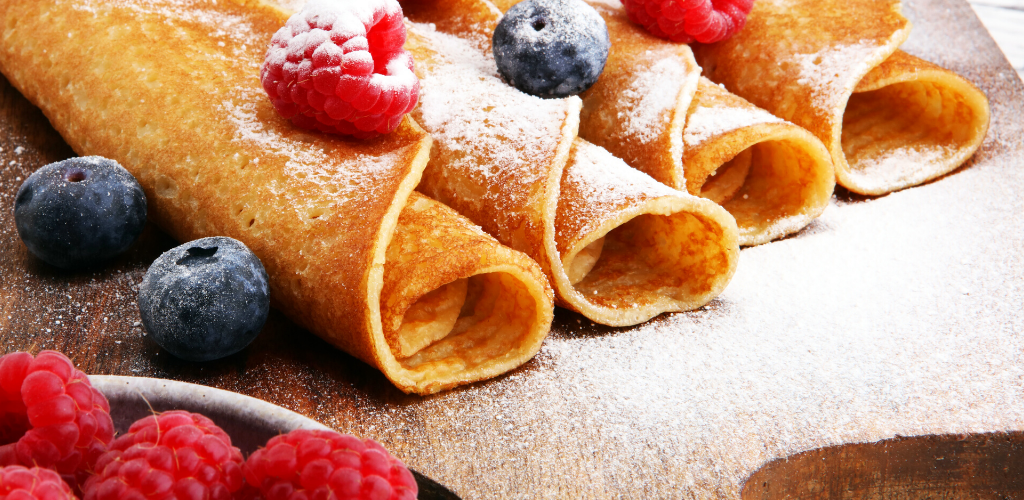 Самый простой и доступный вариант, когда к блинчикам вы нальете пиалу меда, варенья, сметаны или сгущенного молока. Просто и вкусно, актуально в любое время.