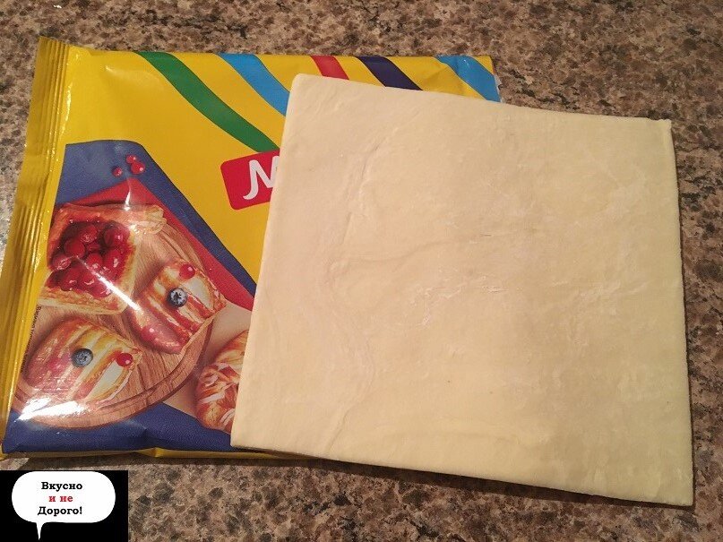 Начинаем готовить, для начала достаньте из морозильника слоеное тесто, и разморозите его до комнатной температуры.