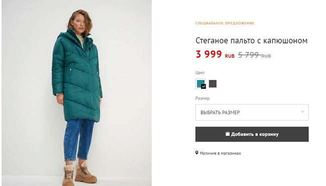 Из раздела «специальное предложение». В этом разделе находятся оставшиеся единицы товара либо старой коллекции, либо нынешней. Обычно эта одежда особенно качественная, поэтому распродажа самая кратковременная