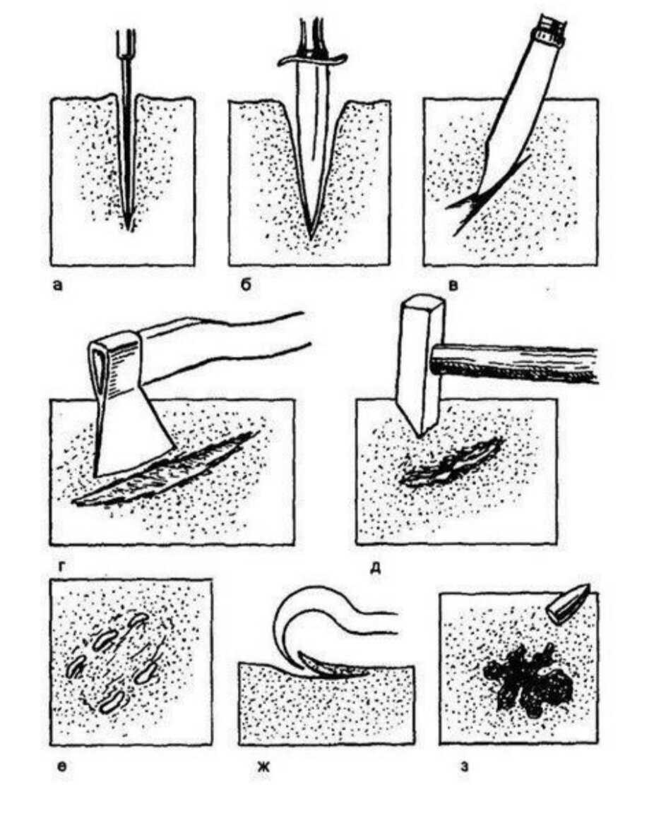 Начиная от неглубоких поражений кожных покровов до сложных ран, которые