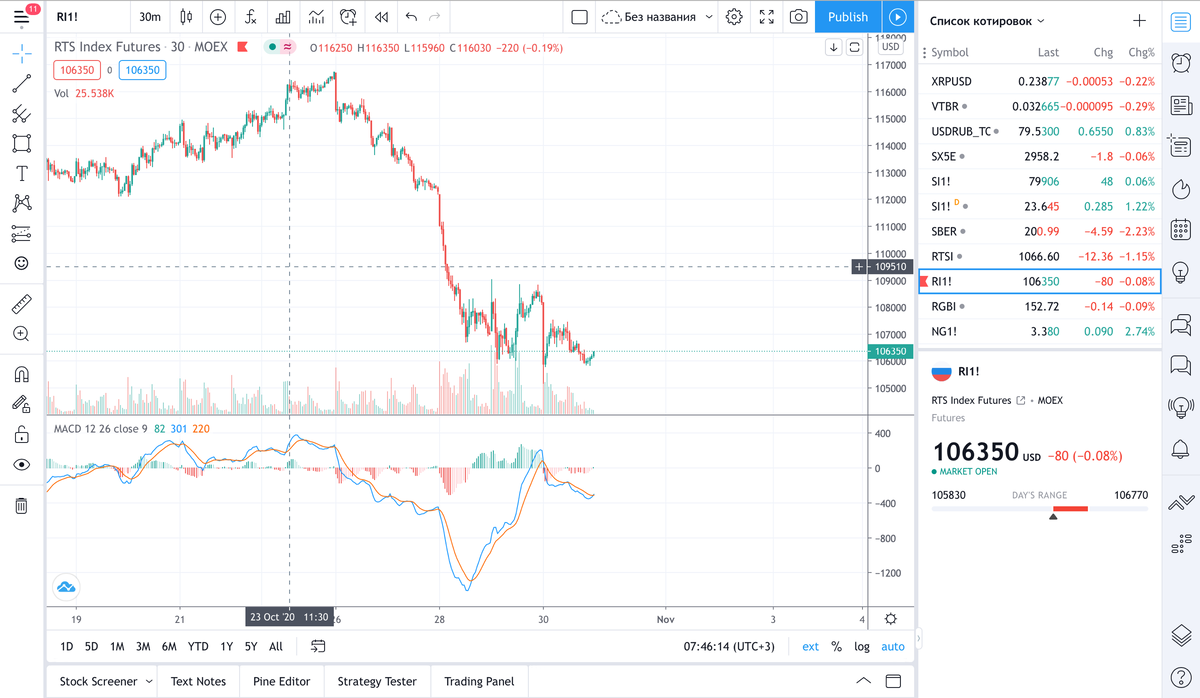 Буду рассматривать фьючерс на индекс РТС. Сначала опишу риски со стороны нашего рынка.