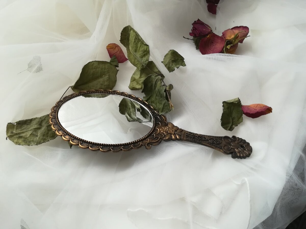 Очень мне понравилась эта красота с потертостями и окраской под метал. Особенно радуют узоры. Вы только взгляните на обратную сторону - загляденье! Лично для меня это зеркало стало необходимостью для фотосессий и для организации фотозон на балах. Там такие штучки незаменимы!