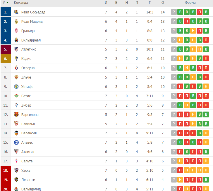 Всем привет, друзья. Для Барселоны вчера был крайне важный матч в чемпионате. Болельщиков мучил целый ряд вопросов. Во-первых, конечно, их интересовало, смогут ли каталонцы, наконец, выиграть, ведь до этого тура команда три матча не знала побед, в двух из которых она проиграла. Поэтому крайне важно было обыграть Алавес. Во-вторых, фанаты блауграны сильно встревожены результативностью своей основной звезды. Напомню, что Месси забил в этом сезоне всего один гол в пяти матчах. Такая низкая результативность для него нехарактерна. В-третьих, каталонская торсида обеспокоена очень низким положением их любимцев в турнирной таблице чемпионата Испании. Кстати, "табель о рангах" перед этим туром выглядела так: