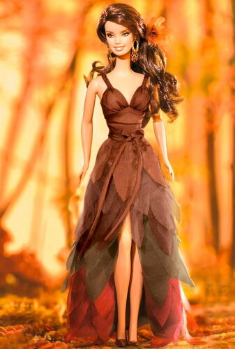 Красивая кукла Барби с красивым названием "Я мечтаю об осени" вышла в коллекции Dream Seasons Collection, название которой я бы перевела, как "Сезонные Фантазии". В коллекции 4 куклы, на каждый сезон. В них дизайнер Шэрон Цукерман воплотила свое видение осени, зимы, весны и лета, если бы они были куклами Барби.