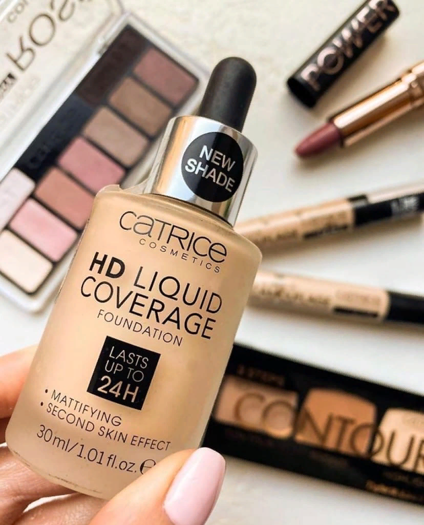 Бюджетный тональный крем Catrice (400-550 рублей). Подходит для комбинированной и жирной кожи. Хорошо перекрывает недостатки кожи, матовый финиш, стойкий. Не сильно ощущается на коже.
