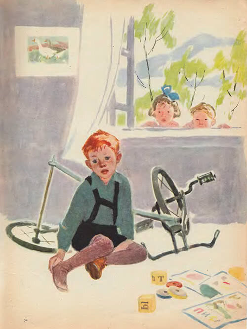 — Как же это ты, Мишенька, сумел у велосипеда колесо отломать?