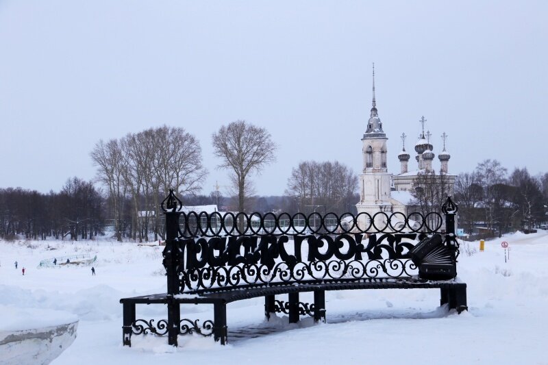 Как нетрудно догадаться, этот памятник дань вологодскому говору. Со скамейки открывается замечательный вид на