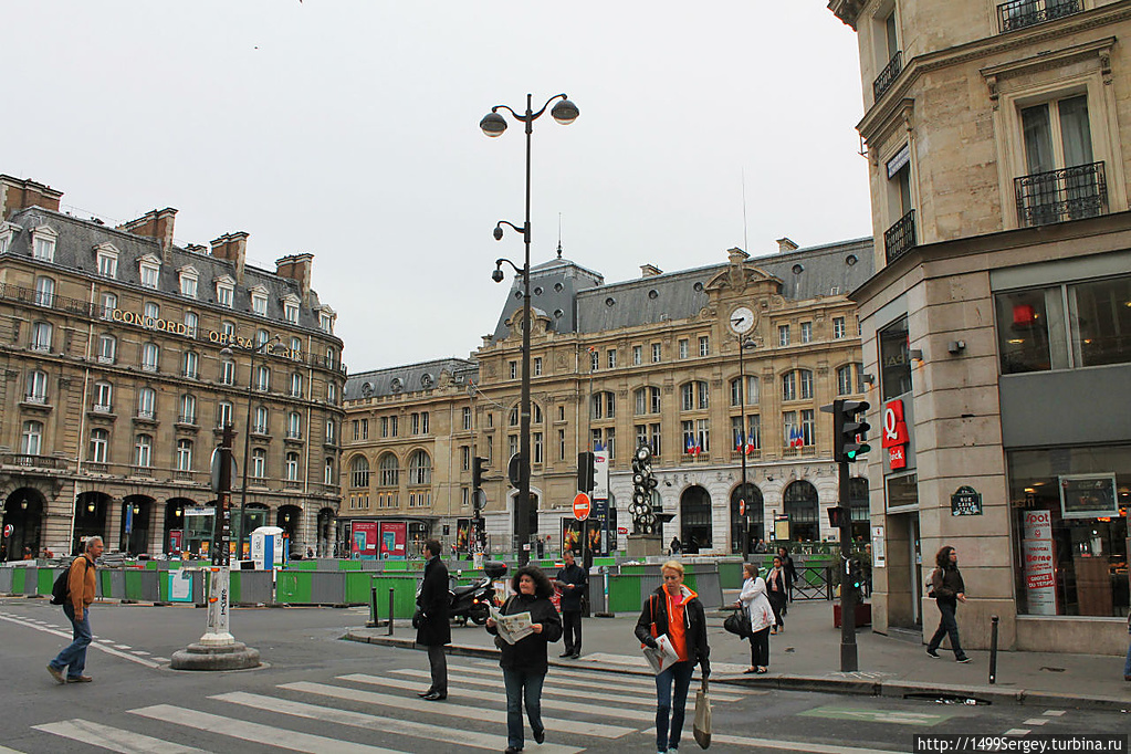Ранним майским утром прибыли мы на вокзал Сен-Лазар. Дедушка Лазар, так ещё называют его парижане, самый старый в столице. Его первые поезда пошли в 1837 году и связывали Париж с пригородом — Сен-Жермен-ан-Ле. Сегодня Сен-Лазар обслуживает регион Иль-де-Франс и Нормандию. Именно туда — на север Франции нам и предстояло отправиться. До прихода поезда у нас оставалось ещё немного время и мы решили прогуляться по одному из самых крупных железнодорожных вокзалов Европы. Первое, что бросается в глаза прибывающим путникам — это необычная скульптурная композиция Арманда Фернандеса. Все циферблаты часов на ней показывают совершенно разное время. На первый взгляд это может показаться странным, но именно в этом и заключён весь смысл. Ведь каждый из нас живёт по своим, только ему одному ведомым ритмам. Бывает так, что одни бегут, торопятся, приходят первыми, но при этом теряют для себя нечто важное, мимолётное, как само время. Другие, в отличии от первых, идут не спеша и при этом успевают открывать для себя новые горизонты. Впрочем, мы немного задержались у наших часов. Вы заметили вооружённых солдат? Не удивляйтесь, в Париже они повсюду. Что ж, за безопасность нужно платить, пусть и такую цену. Меж тем, мы всё чаще прислушиваемся к голосу диктора по вокзалу. Странно, но между монотонными объявлениями о прибытии поездов пробиваются некие звуки и похожи они на музыку. Удивительно то, что это живая, определённо — живая музыка. Мы спешим на её звуки и перед нами открывается необычная картина. Буквально, как рояль в кустах, среди немногочисленных пассажиров, появляется молодой человек, играющий на пианино. Уже будучи дома и переведя надпись на музыкальном инструменте, нам стало всё ясно. Юноша с сумкой у ног был таким же путешественником как и мы, а надпись гласила: "И вы можете играть!"Каждый пассажир, в ожидании своего поезда, мог свободно сесть за инструмент и сыграть на нём. И не важно при этом какой он исполнитель. Главное, что бы у вас было желание. И как здесь не вспомнить слова старой, но популярной песни: "Как провожают пароходы, совсем не так, как поезда". Ничего не можем сказать за пароходы, но нас в тот день провожали с музыкой. Увы, стрелки наших правильных швейцарских часов показывали точное время, что и подсказывало — пора выдвигаться к перрону.Здесь опять встречаем мы наших солдатиков и на память приходят слова из старого советского фильма о Ленине: "Теперь не нужно бояться человека с ружьём". Вкратце успею рассказать предысторию. Действие происходит в лихую годину гражданской войны в России. Из осеннего леса выходит бабуля с вязанкой дров на плечах. Внезапно, на её пути вырастает человек, вооружённый винтовкой. Женщина в страхе швыряет вязанку и пытается бежать, но мужчина останавливает её. Он собирает брошенный хворост, при этом добавив немного от себя и всё это вручает остолбеневшей старухе. Так, с подачи солдата родилась эта крылатая фраза. Увы, многие сегодня её подзабыли. Чего нельзя сказать о французах. Приятно, когда вот так сохраняется память.Тем временем публика на перроне оживилась. Объявили наш поезд. Несколько прощальных взглядов, улыбок и пожеланий хорошей дороги. Что ж, будем прощаться? Впрочем, мы говорим вам до свидания, а прощанье не для нас.