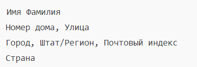 Особенно важны почтовый индекс и правильный формат для страны назначения.