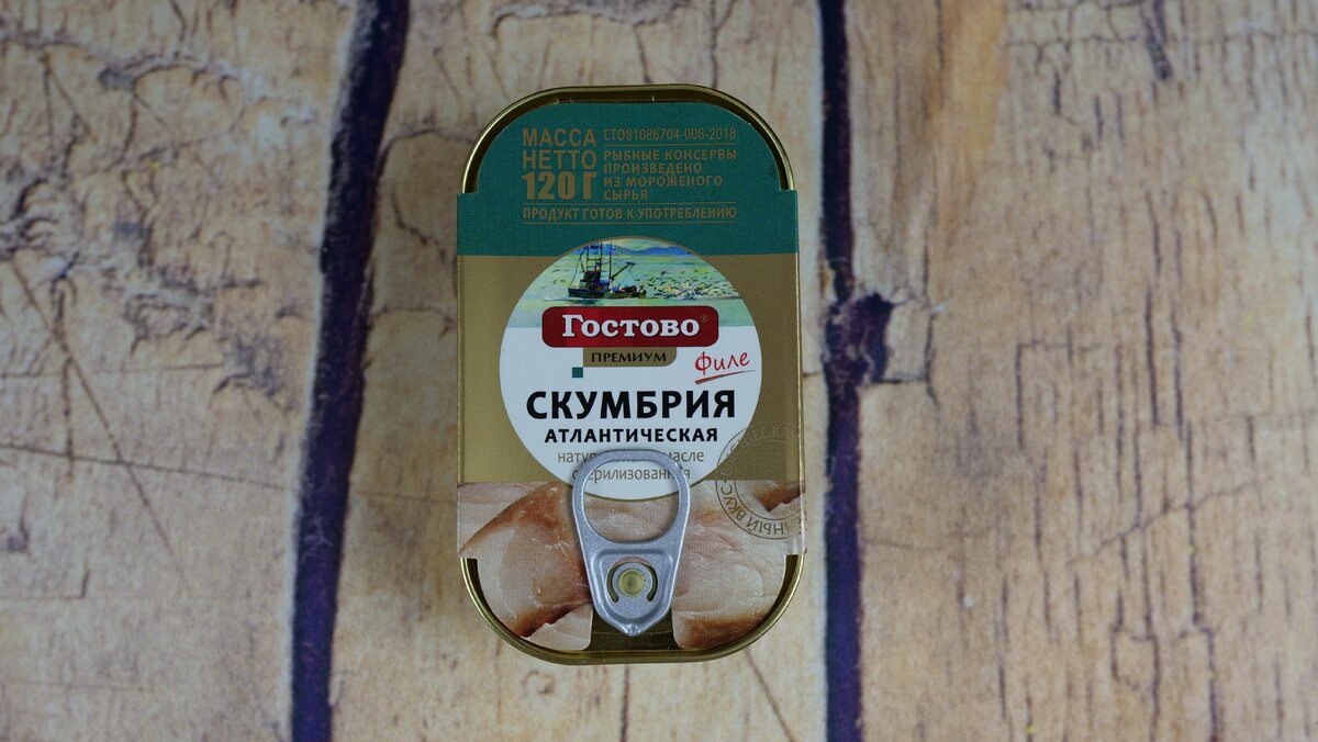 На этот раз мне попалась баночка консервированной скумбрии в масле от бренда "Гостово";