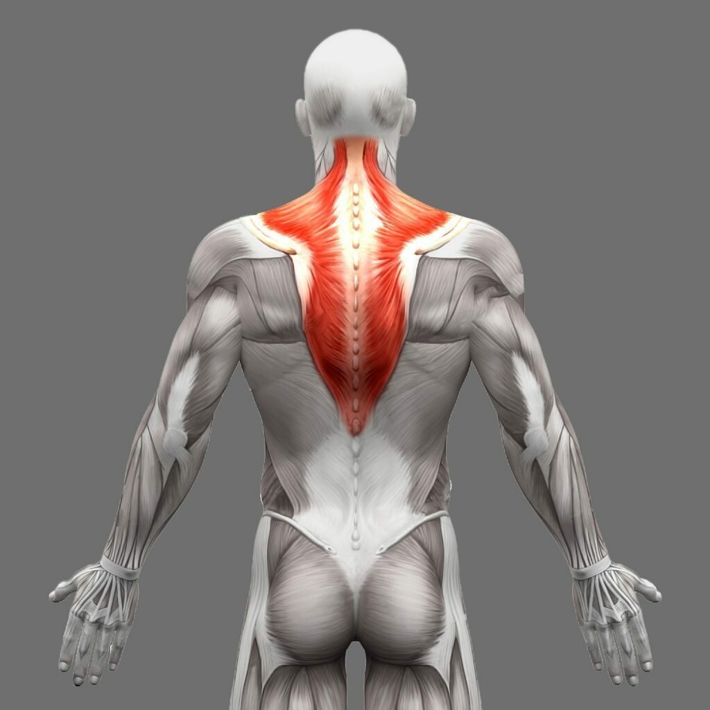 Трапециевидная мышца находится в верхней части спины , от лопаток до самого верха шеи . И если тренировать данную мышцу то общий вид может круто измениться придавая более мощный вид .