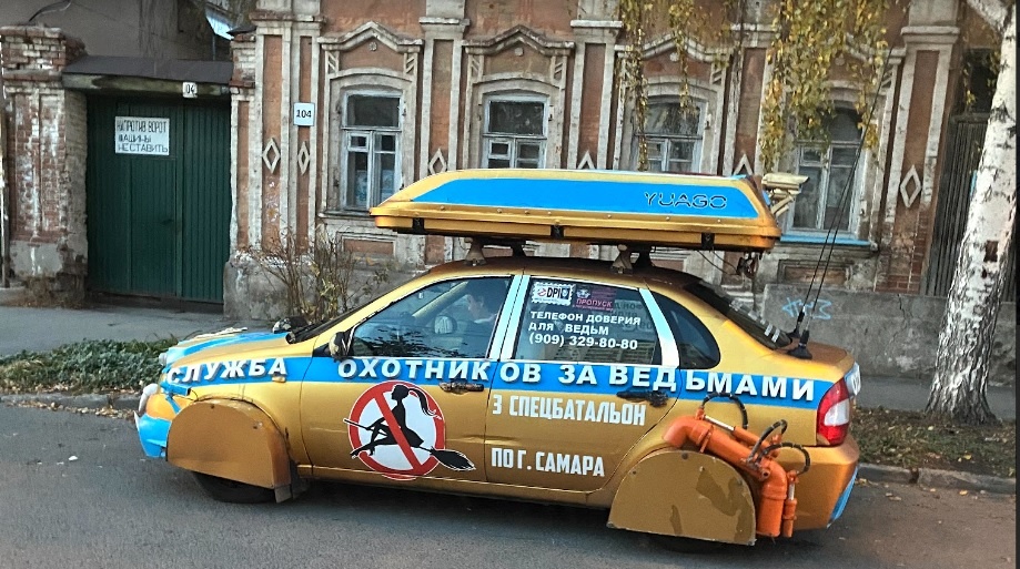 Автомобиль по борьбе с ведьмами хаха. Для чего так сделали хозяева, это останется тайной...Наверное в ночь на хэллоуин эта машина выезжает и ловит штормящихся девушек выходящих из танцевальных заведений...