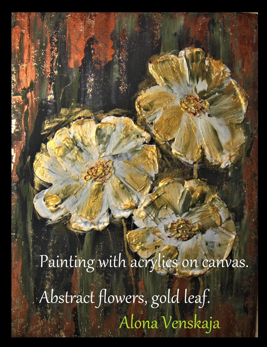 Для создания картины вам потребуется холст на картоне или подрамнике, акриловые краски, мастихин и кисти, текстурная паста и поталь.