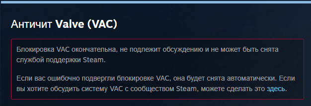Разработчики с недавних пор сами написали, если вас ошибочно подвергли блокировке VAC, она будет снята автоматически. Если вы хотите обсудить систему VAC с сообществом Steam, можете сделать это здесь.