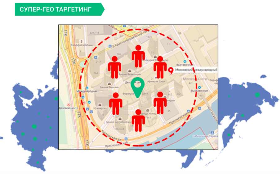 ВКонтакте позволяет показывать рекламу тем, кто живет, работает или прямо сейчас находится в радиусе от 500 метров от указанной вами точки.