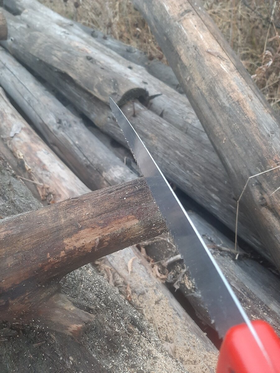 Как я говорила на участке много деревянных брусков, я спилила нужное мне количество тонких.