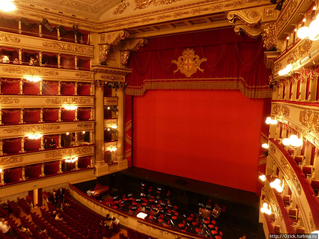 В Милане мы были проездом, всего один вечер. Приехали специально, с единственной целью, посетить оперу. Билеты бронировали еще в Петербурге на сайте театра, которые мы получили на домашний адрес по почте.У каждого города есть своя энергетика, аура. У Милана она очень хорошая. Я, мысленно, посещая города, примеряю свое отношение к ним, как " смог бы здесь жить" или нет. Милан, в этом смысле, мне очень понравился.Город сразу оглушил нас звоном оранжевых трамваев, так приятным питерцам, вскриками клаксонов, полицейскими сиренами, стрекотом мотиков и еще какой-то кокофонией городских звуков!Показалось, что какой-то кавардак!Навигатор упорно возил нас по улицам, то направо, то налево, никак не подводя поближе к отелю. Наконец вывез на Корсо Буэнос-Айрес. С парковкой, конечно, чума! Пришлось включить "аварийку" и звать на помощь администратора отеля. Он пригласил шофера и тот увез нашу машинку куда-то в гараж. Встретились мы с ней только следующим утром.До спектакля оставалось времени совсем немного и мы вызвали такси.Кстати, накануне мы решали, "в чем пойти" в итальянскую оперу? В гардеробе туриста, в основном, "шорты да майки". Решили, что в них идти не комильфо и хотелось еще, чтобы это событие запомнилось для нас, как праздник! Я предложил заехать, по пути в Милан, в аутлет и мои девочки меня с радостью поддержали. Заехали в Serravalle и прикупили "габбанов" и "версачей", так что смотрелись на 150%. Хотя, сознаюсь, были сомнения, что будем выглядеть "белыми воронами".Итак, мы у Teatro alla Skala!Внешне здание театра ничем не примечательно и не выделяется из окружающей архитектуры. Слева музей и кафе, где можно скоротать время. Напротив небольшой садик. Впрочем, все уютно.Наконец, секьюрити в длинных и черных одеяниях, открыли двери и стали пропускать зрителей. Сегодня давали оперу Джоаккино Россини "Итальянка в Алжире". Мы разместились в 11 ложе 4 яруса. Постепенно зал заполнялся публикой. Надо отметить, что большинство женщин были в платье, а мужчины в пиджаках. Попалась на глаза группа мужчин в смокингах и бабочках. Но были посетители и в джинсах. Вокруг красный бархат и позолота. Ла Скала