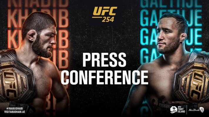 21 октября состоялась пресс-конференция на бойцовском острове UFC в Абу-Даби к поединку между чемпионом UFC в легком весе Хабибом Нурмагомедовым и временным чемпионом Джастином Гэитжи.