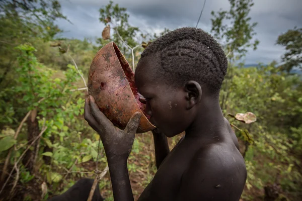 Ритуал вступления во взрослую жизнь этого племени состоит из нескольких процедур. В первой части ритуала подростку производится варварское обрезание, после которого мальчик должен съесть свою только что отрезанную крайнюю плоть. Во второй части ритуала подростку производится меатотомия — разрезание нижней части пениса по каналу вплоть до самой мошонки, для очищения вытекающая кровь должна капать в огонь. С этого момента мужчина будет мочиться через оставшийся участок уретры, который находится довольно далеко от головки пениса. Непонятно, конечно, что ж в этом ритуале такого мужественного