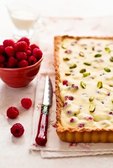 - Малину вымыть и обсушить, положить малину на одно основы для пирога, залить шоколадным кремом. По желанию, можно украсить рубленными фисташками. Поставьте тарт в холодильник на пару часов. Приятного аппетита!