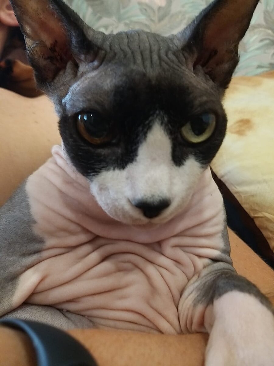 В процессе общения со зверем помимо клички придумываются разные клички)) И вот как то однажды зашёл разговор про породу нашего кота. Оказалось что у нас помесь донского и канадского сфинкса( опять же нам сказали наши любимые продавцы и ветеринары) Ну вот в процессе разговора один из участников не выговаривает название породы и говорит:"сфинксМЕН" Мы расхохотались... ну а за нашим питомцем привязалась дополнительная кличка "СфинксМЕН" Теперь в шутку иногда называем его так)