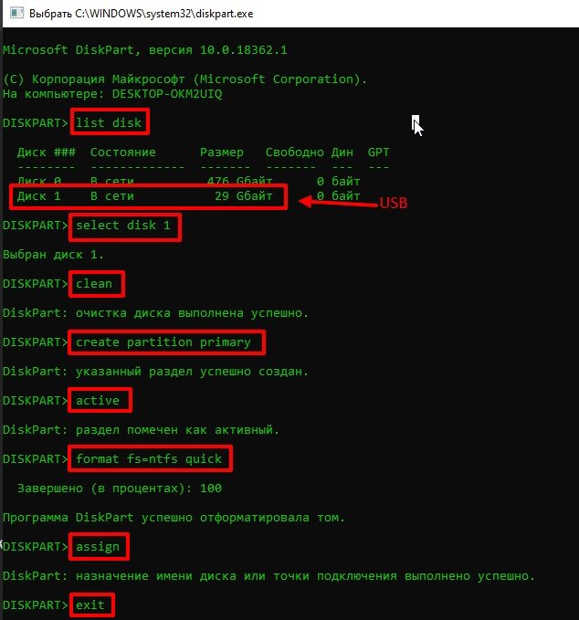 diskpart //запуск